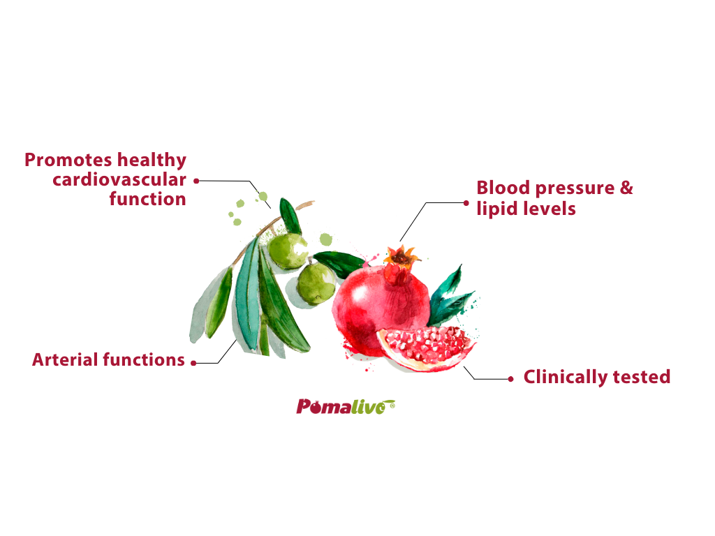 Pomalive®, inspired by the Mediterranean diet, contains a patented synergistic combination of highly bioactive polyphenols from fresh pomegranate fruit extract (punicalagins) and olive fruit extract (hydroxytyrosol).