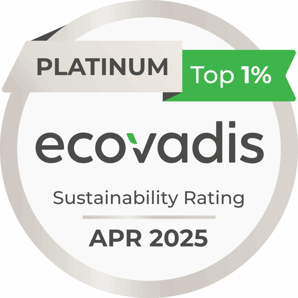 We are proud to have received the EcoVadis Platinum Medal once again, in recognition of our ongoing commitment to sustainability. This achievement places us among the top one percent of more than 100,000 companies evaluated for their environmental, social, and governance practices. It reaffirms our dedication to sustainability across all areas of our business.